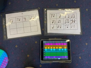 In a Rhythm Unit this means understanding how music is presented in time, developing the skills to be able to do that, and have the opportunity to present their skills and knowledge in a variety of ways.